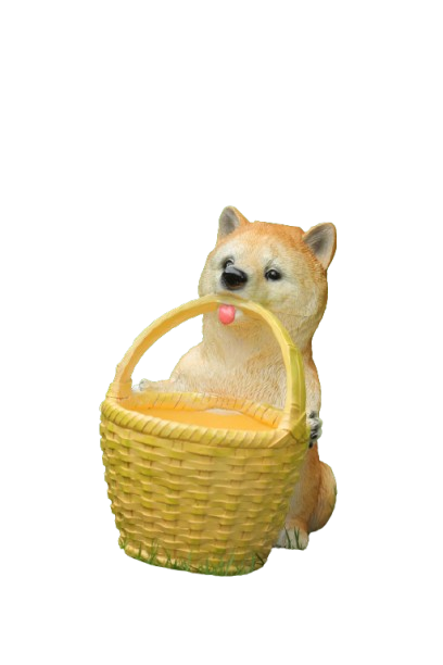 Charming Shiba Inu dog figurine with a yellow woven basket design