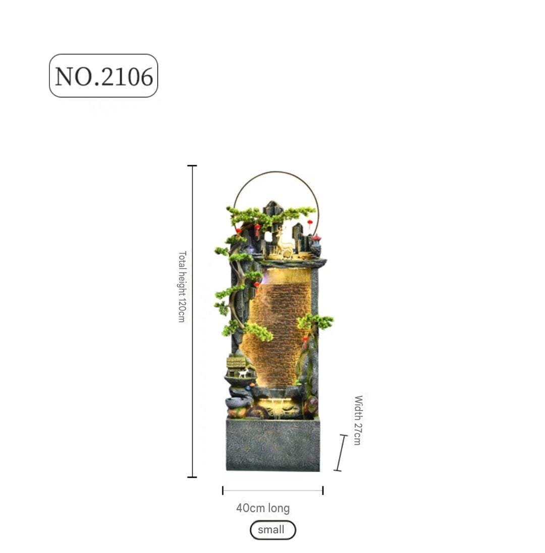 Features built-in LED lights that create a mesmerizing ambiance while water cascades down the tower structure