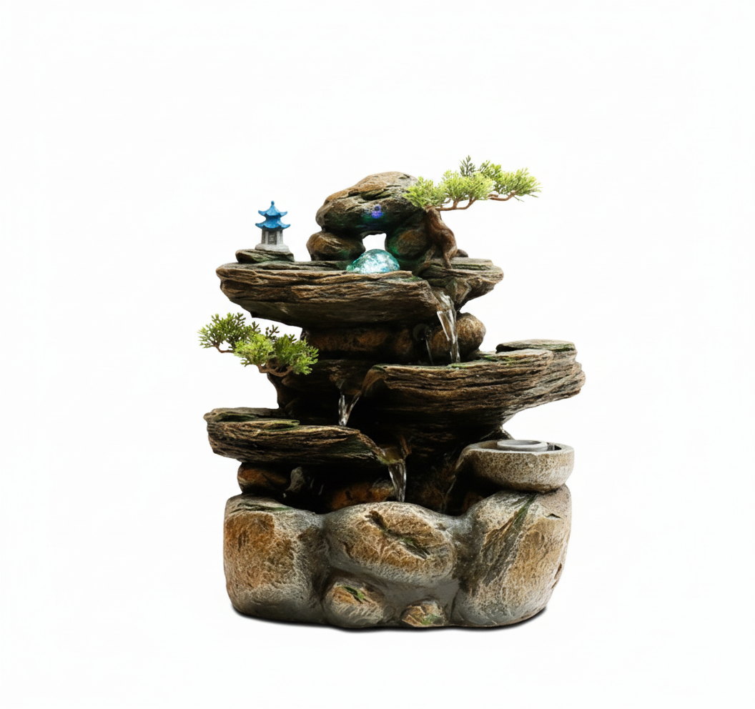 Features a beautifully sculpted cascading design that mimics natural mountain rock formations, enhancing your indoor space with an organic, earthy aesthetic.